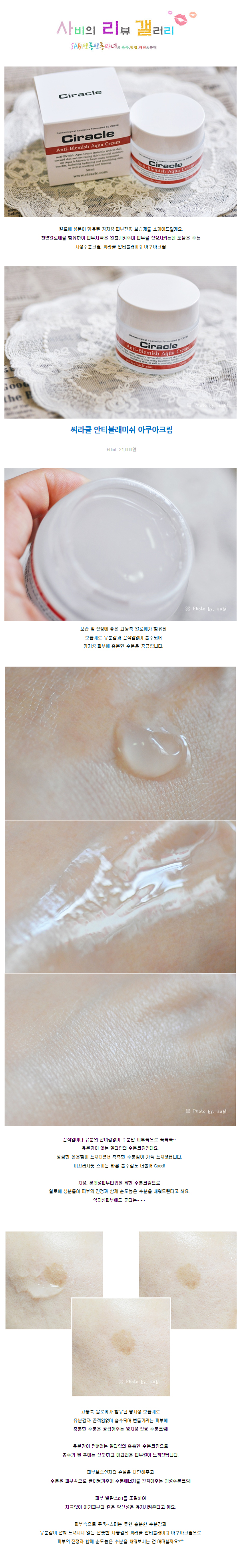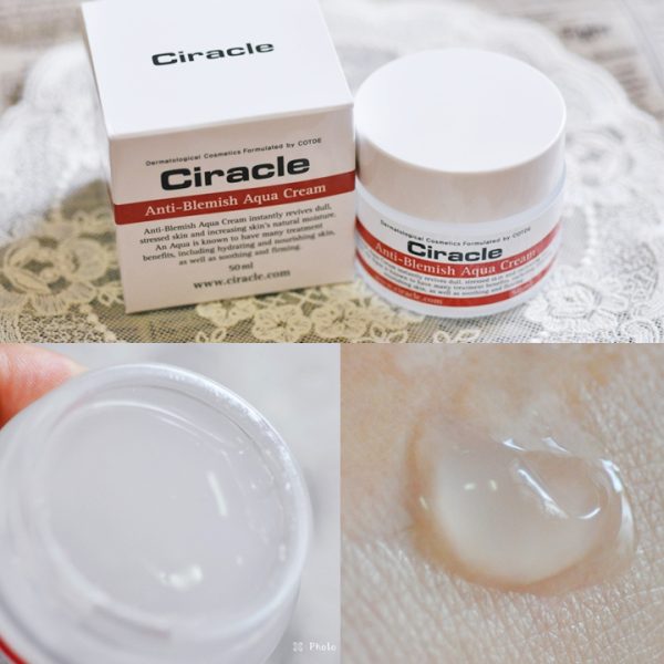 - Anti-Blemish Aqua Cream?s natural aloe ingredient not only provides moisture on your weary skin but keeps your skin away from being oily. Your troubled skin will be solve with the Ciracle?s aloe face cream.