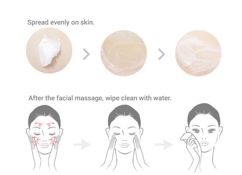 Step1. Spread on face with 3 or 4 scoops.