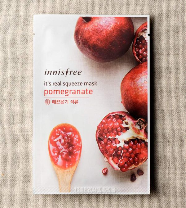 Innisfree My Real Squeeze Mask (New 2017) is made by cold pressing, meaning that the nutrients in the ingredients are pressed and extracted in very small amounts in gradual decreasing temperature. In this way, the nutrients obtained are pure and pure, and unnecessary ingredients are removed.Innisfree My Real Squeeze Mask Pomegranate : improves and prevents the aging process, while nourishing the skin soft and smooth.