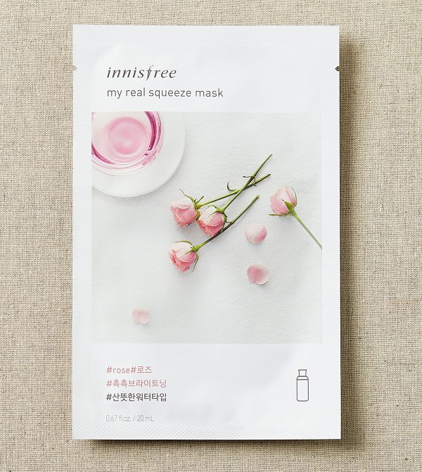 Innisfree My Real Squeeze Mask (Roses): Provides moisture to smooth and nourishing skin.