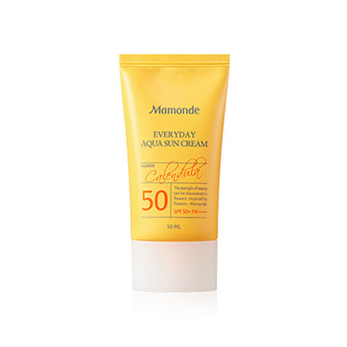 Korean Mamonde Calendula Everyday Sun Cream SPF50+ PA+++ 50ml Skincare Cosmetic Description: A sun cream that protects the skin from UV rays completely everyday and delivers an innovative moisture formula for moisturization and smoothness. Blocks the long-wave UVA that penetrates deep in the skin to cause photo-aging and leaves your skin resilient and smooth. The water-splash formula that bursts upon application supplies ample moisture all day.Mamonde
